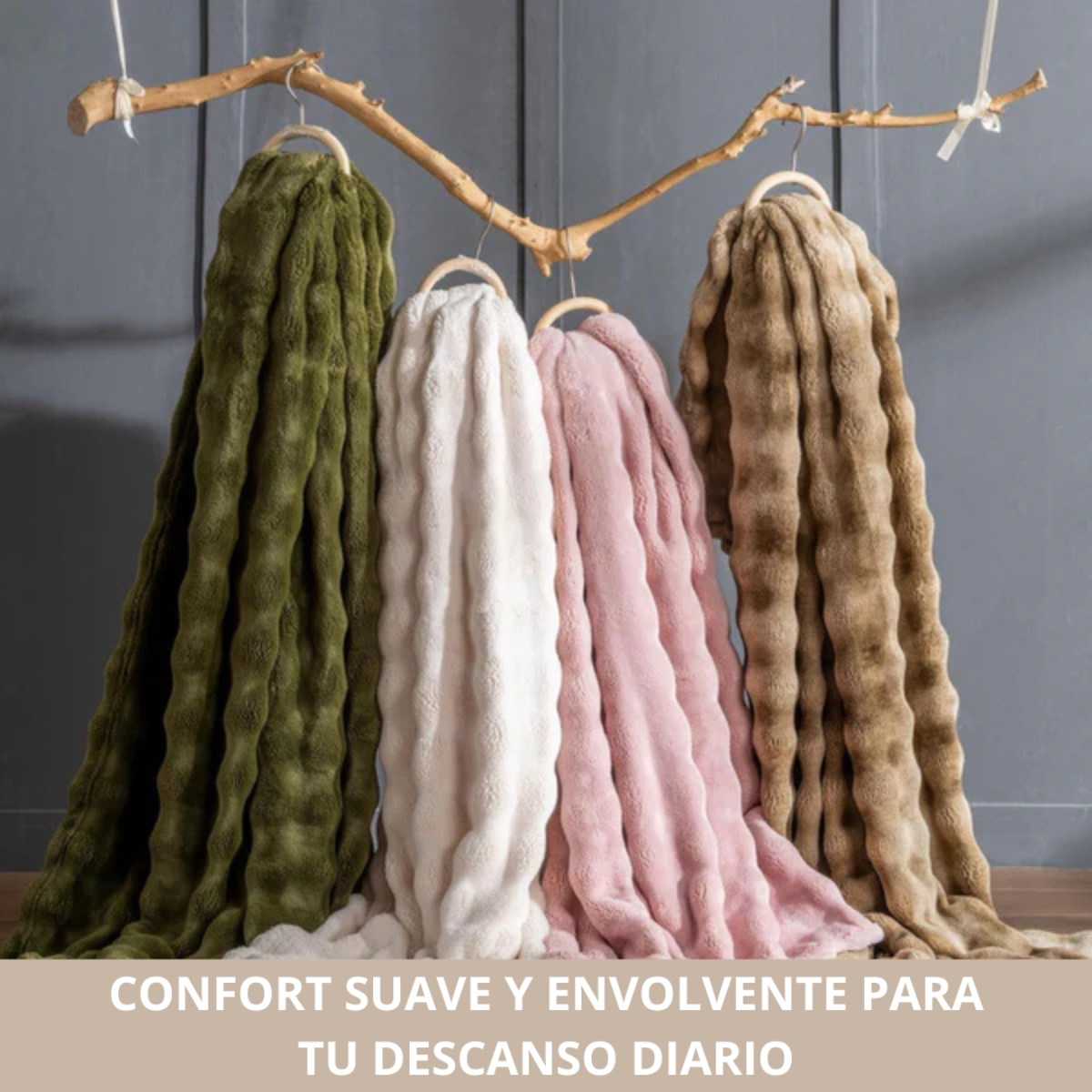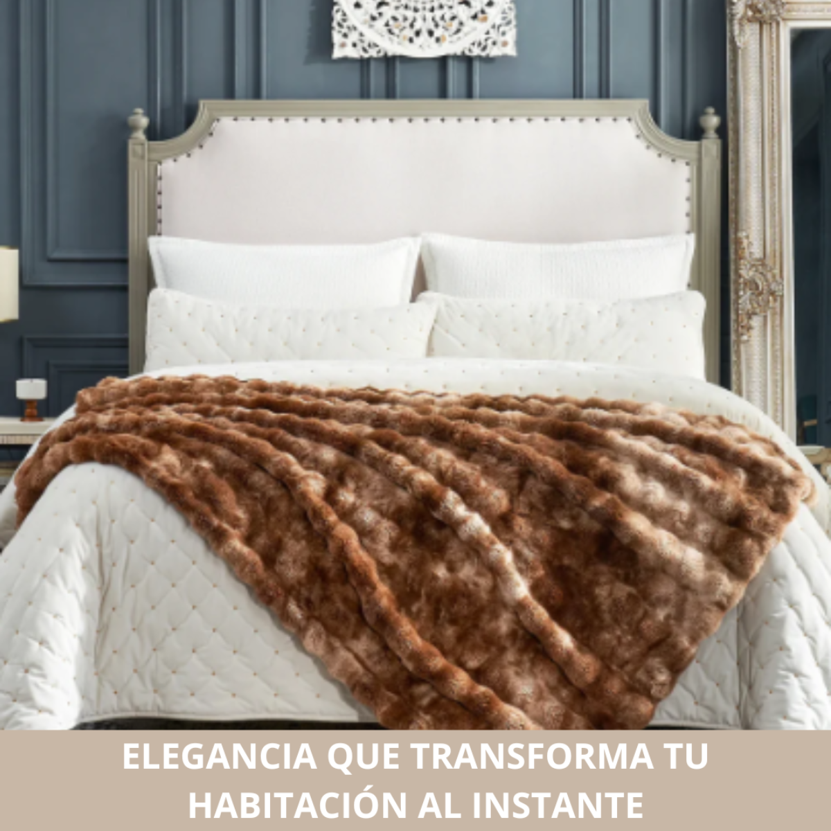 La Cobija Piel de Conejo transforma tu cama o sala en un espacio cálido, hermoso y sofisticado, brindándote una suavidad elegante y el confort que hace tus noches más agradables.