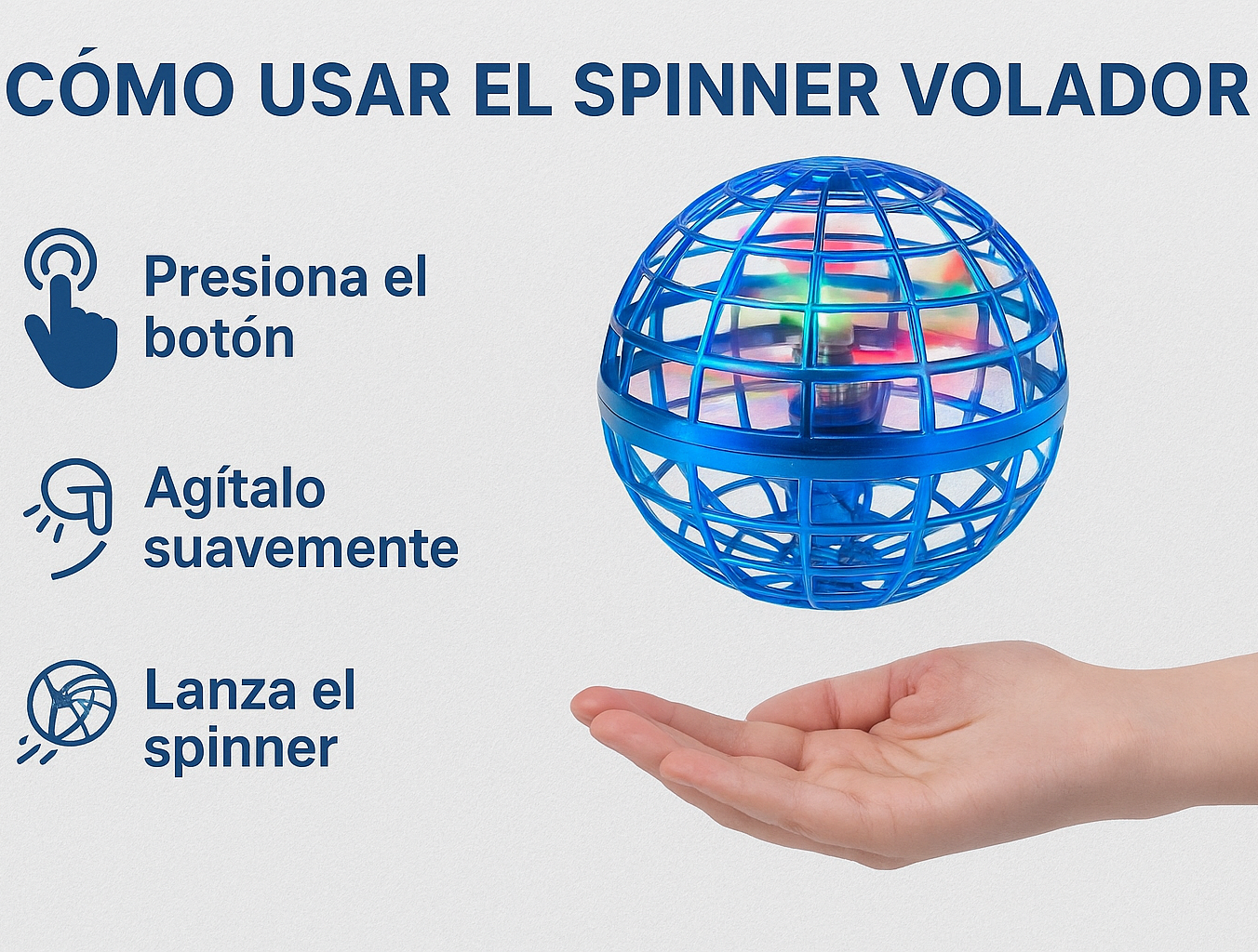 El Spinner Volador es el juguete inteligente que vuela, brilla y regresa a tus manos, ofreciendo una experiencia única de entretenimiento y emoción cada vez que lo lanzas.
